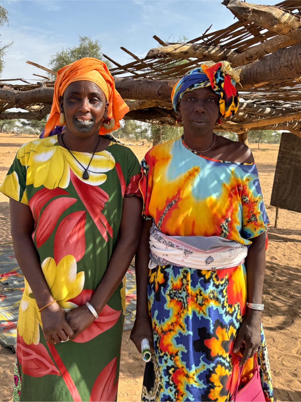 As we approached the school, a shelter structure with a black board for instruction, matts for the students, and a shade-providing stick roof, the village chief and the head of the women’s community came to meet us. There had been a death in the village, and so class had been cancelled for the day and they were very sorry that many villagers could not be here to greet us as they would have wished. The teacher, Habibou Sy, gave us a tour and explained the curriculum of French, and Arab.