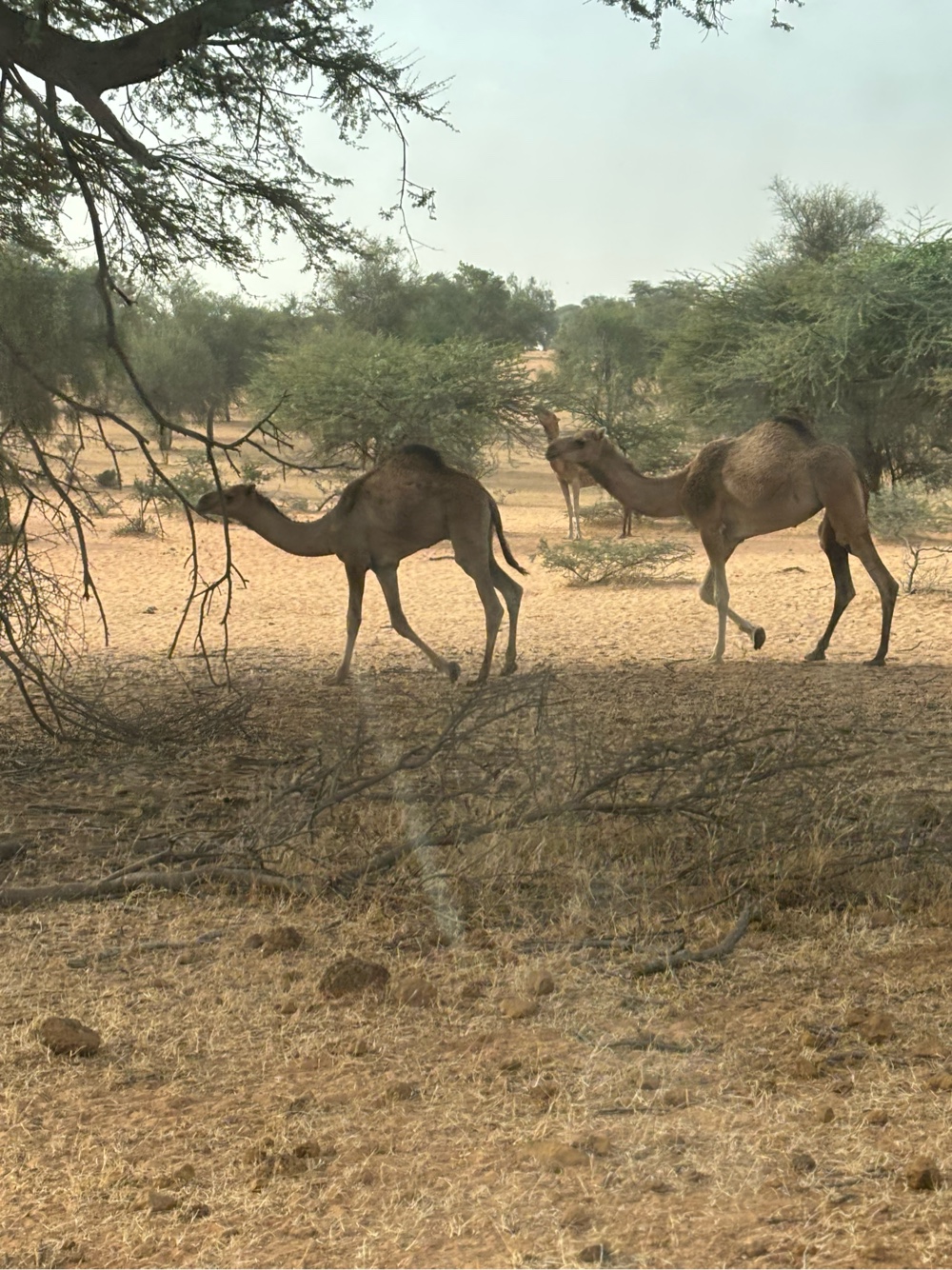 The road to Dahra Diolof from near Louga was surprisingly good. The stretch of “pavement” that once took 3 or more hours to traverse with great care we flew over in one third the time, only pausing for the occasional donkey or zebu standing in the road. we arrived in Dahra in good time and picked up our desert guide, Omar. I remarked on the continuation of the excellent road, but then we turned off to the right, dipping onto a desert track. We soon found ourselves surrounded by dromedaries as they leisurely crossed the track.